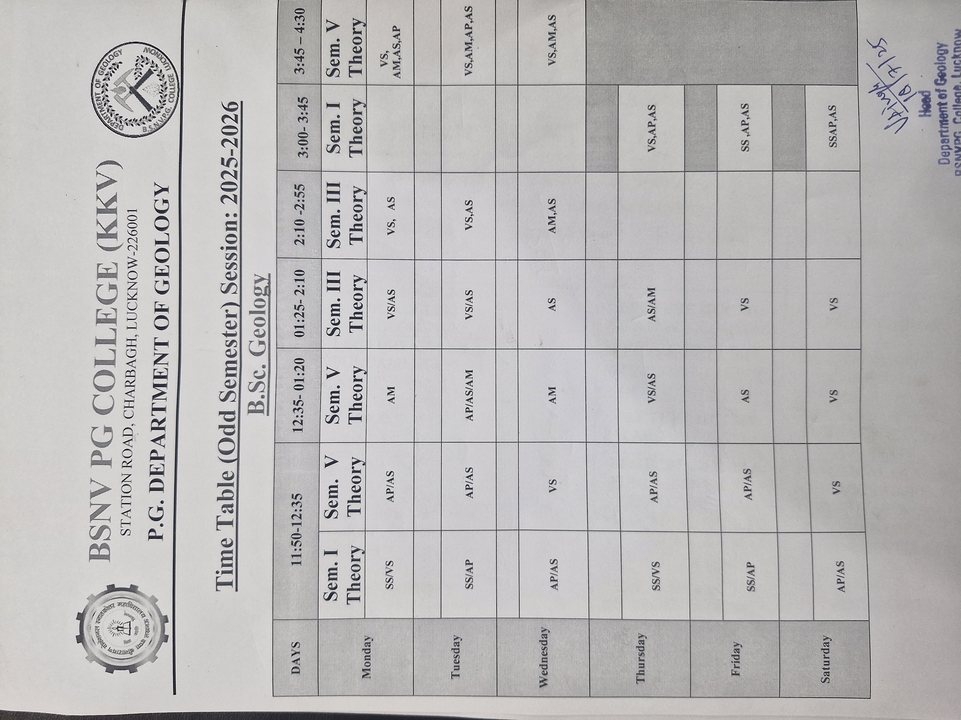 Time Table for B.Sc.(NEP) Geology Odd Semester session (2025-2026) |