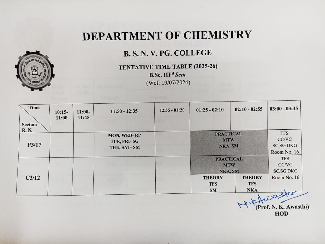 3 B.Sc. 1st Sem. Time-Table 25/09/2025 View