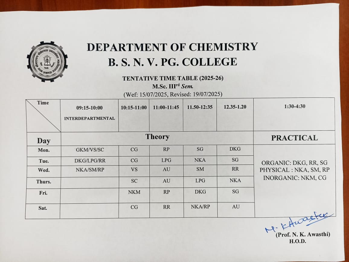 4 M.Sc. 3rd Sem. Time-Table 25/09/2025 View